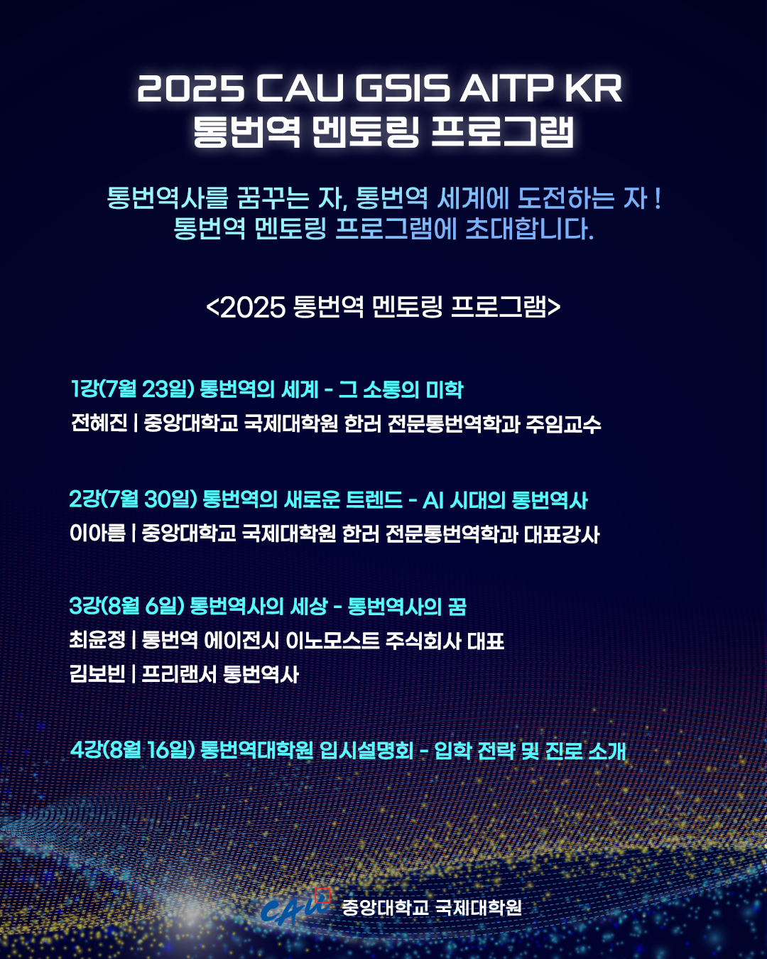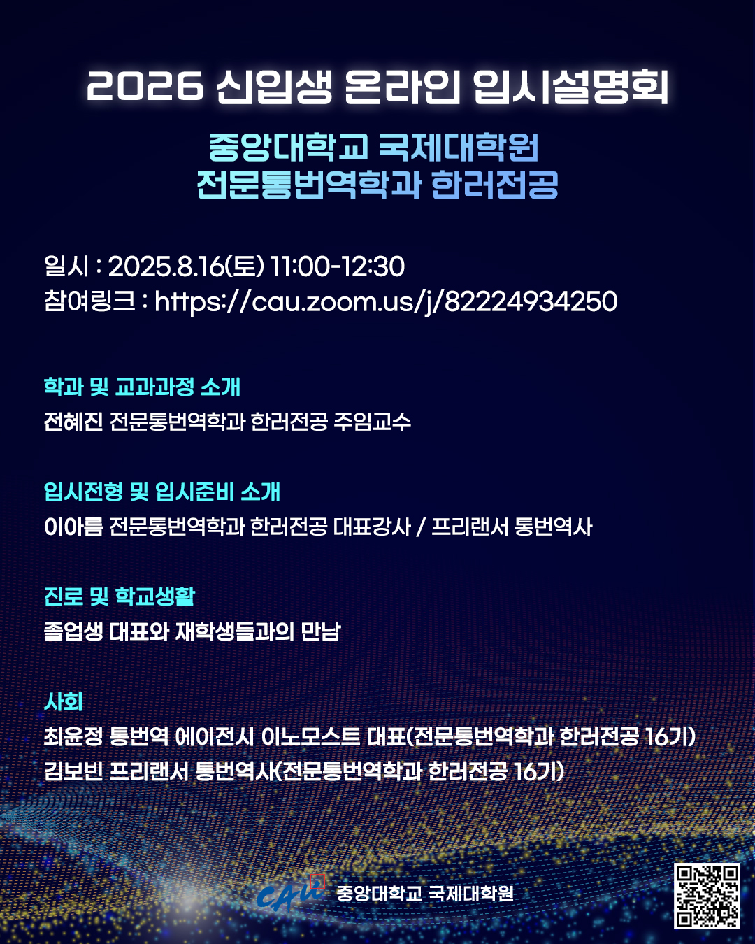 [홍보]중앙대 국제대학원 전문통번역학과 한러전공 “2025 멘토링 프로그램” 및 “2026학년도 입시 설명회”